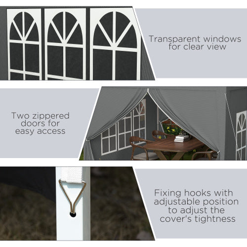 - Steel frame: Powder coated for extra strength, this is a strong core for this garden shelter. 3m x 3m gazebo with sides comes with 4x guy ropes and 8x ground stakes to pin to the ground.