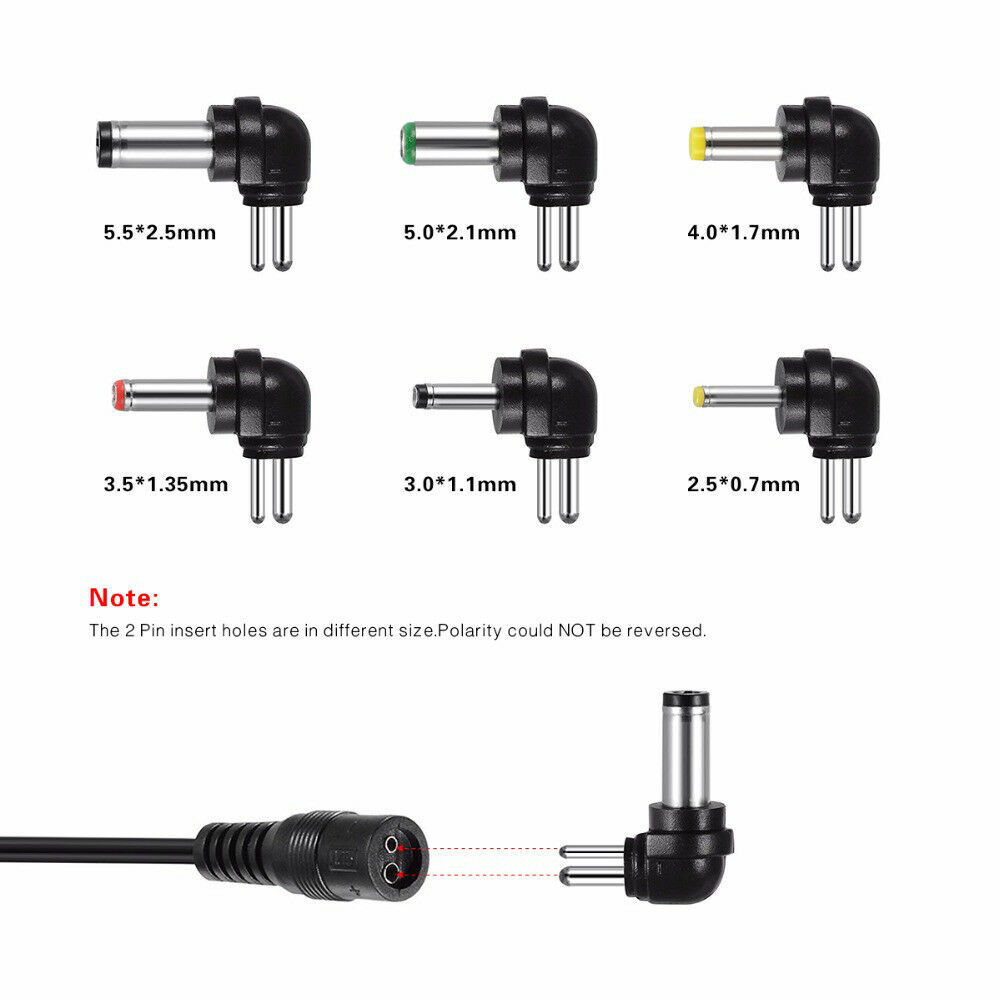 4.Easy to Use: Voltage is easy to adjust, because you can convert to different voltage with the provided key. 6 DC Plugs of different sizes are easy to connect and practical to use. (Note: DC Plug Polarity: inner Positive(+), outer Negative(-), Polarity is Not reversible.)